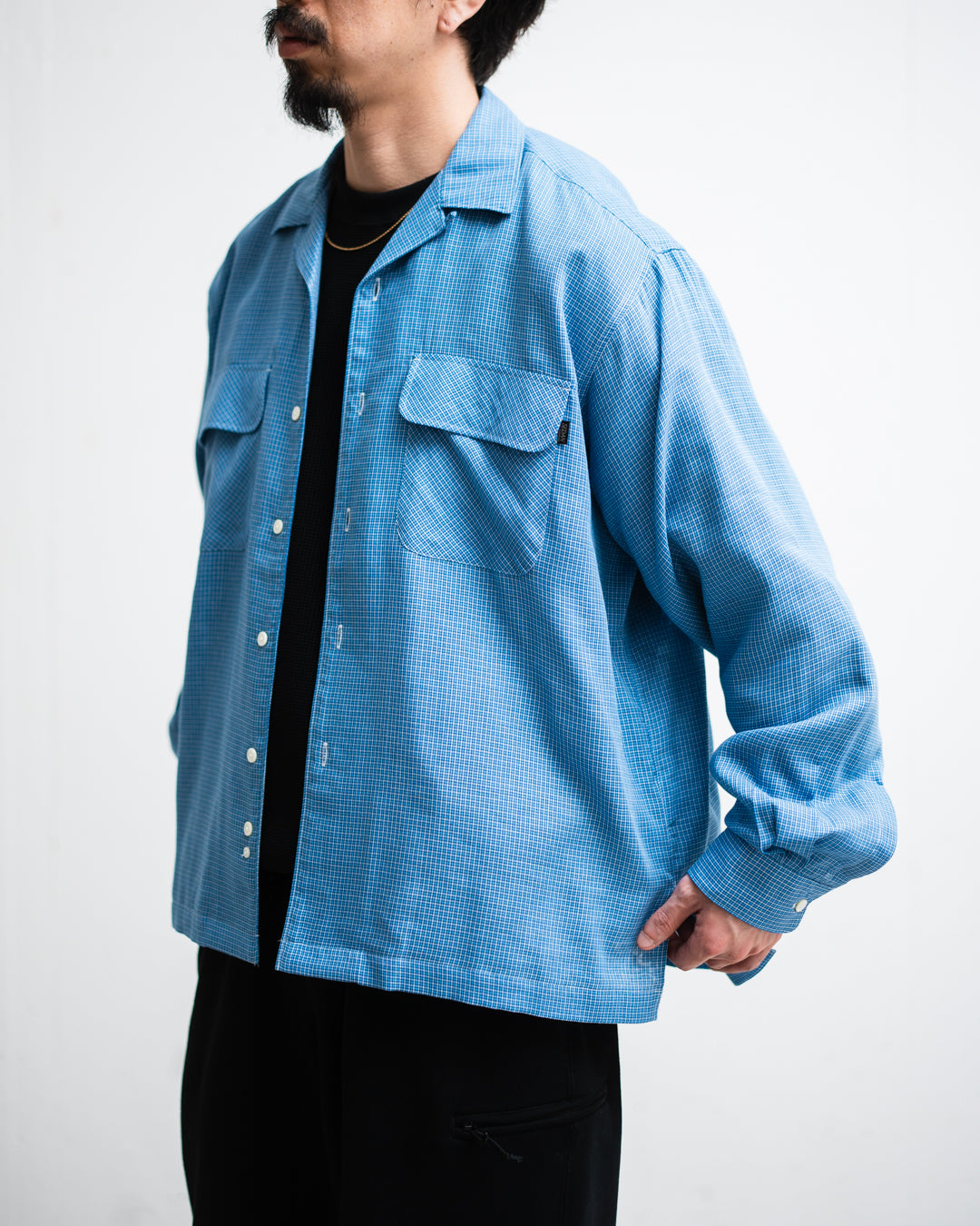 めちゃくちゃいい生地を見つけました。コットンxテンセルでドライ感はありつつ柔らかく、薄いガーゼの生地を2枚重ねたような不思議な素材感。ラフに羽織るだけで様になるシャツなのでSEDANの開衿シャツをすでにお持ちの方にも自信を持っておすすめできる1枚です。細かなチェックでコーディネートも選ばない良いシャツです。