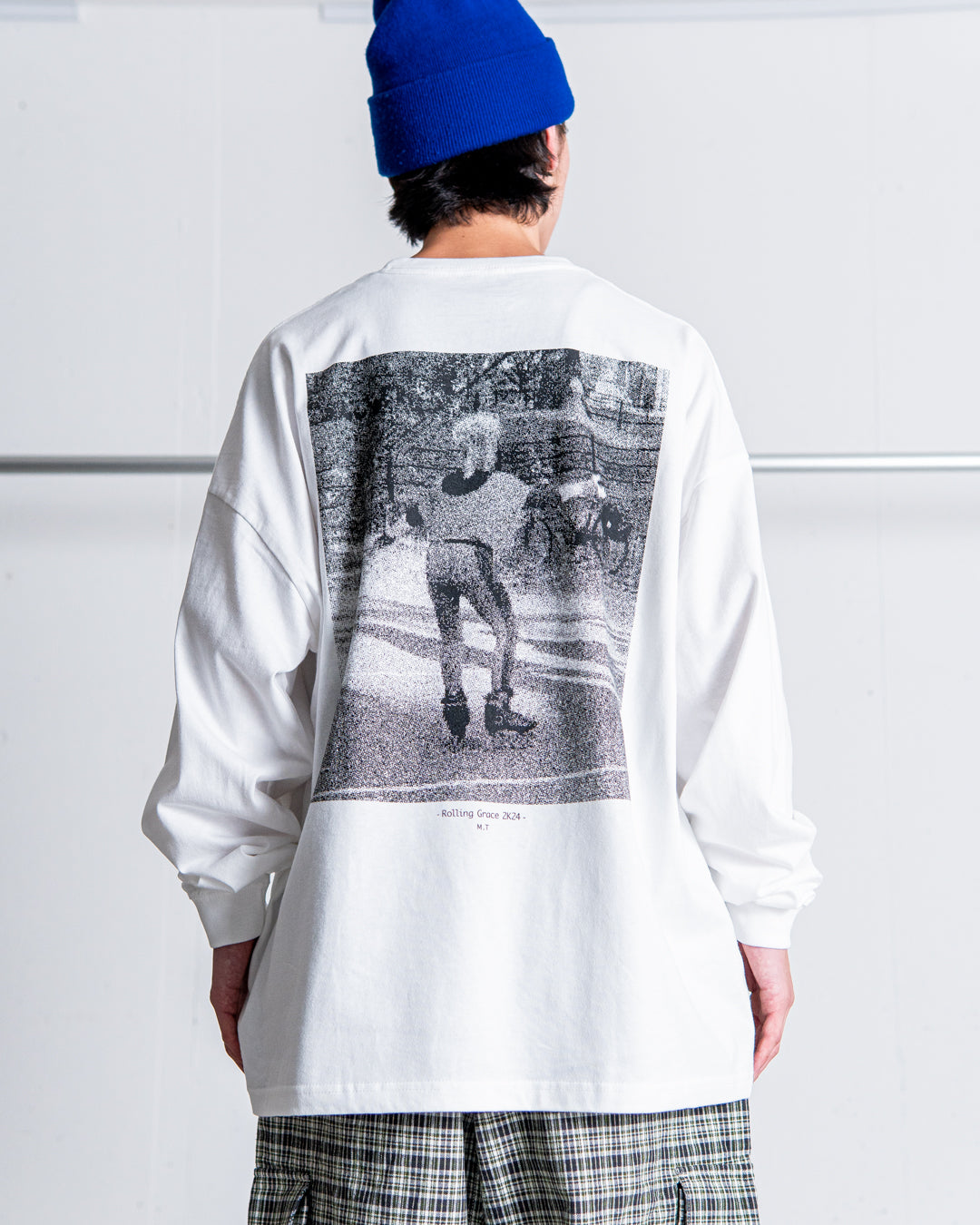 白でも透け感のない、程よい肉感としなやかさを 持つボディーに、オリジナルのグラフィックを 施したプリントTシャツ。 背面にNYを拠点に活動する写真家 Masahiro Takai の作品をプリント。 また、フォトプリントの上には、 WHITEには透明なゲルプリント、 NAVYには蓄光プリントで(Don't)の 文字がプリントされています。