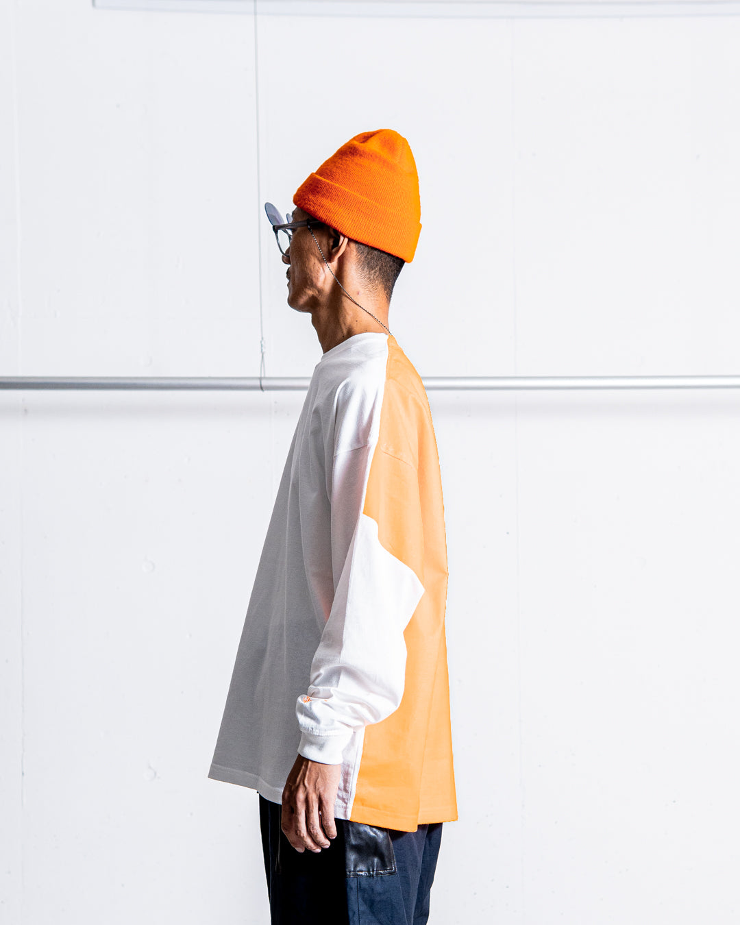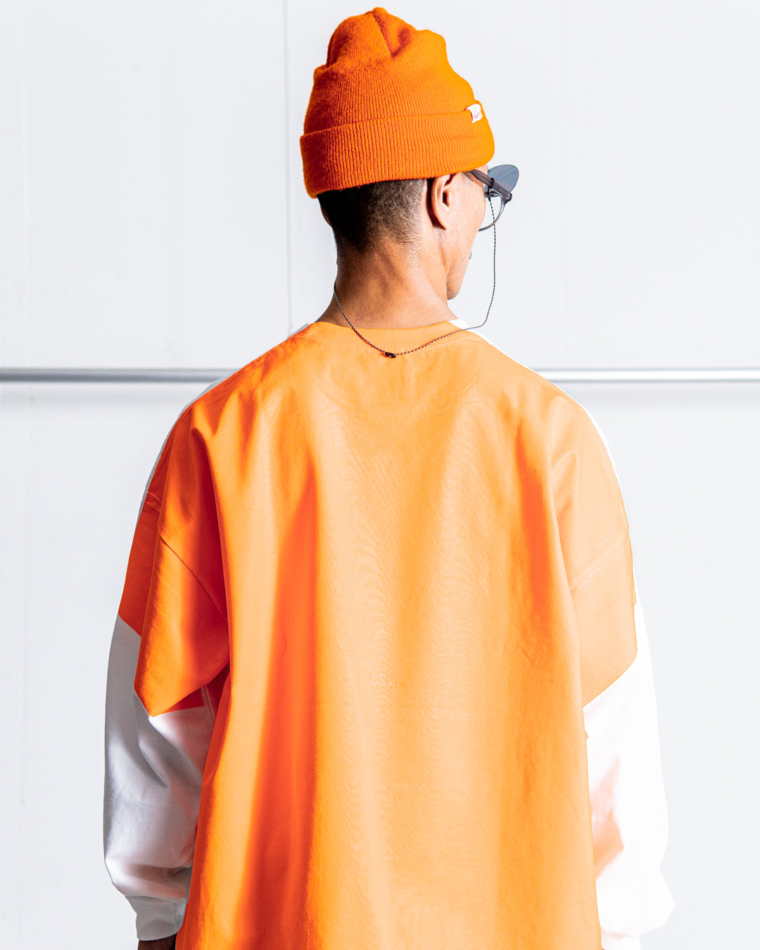 [MENS] モデル 身長169cm 体重53kg / 着用サイズ 1 / 着用カラー WHITE × ORANGE