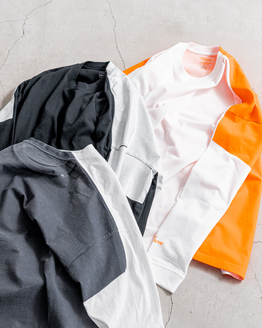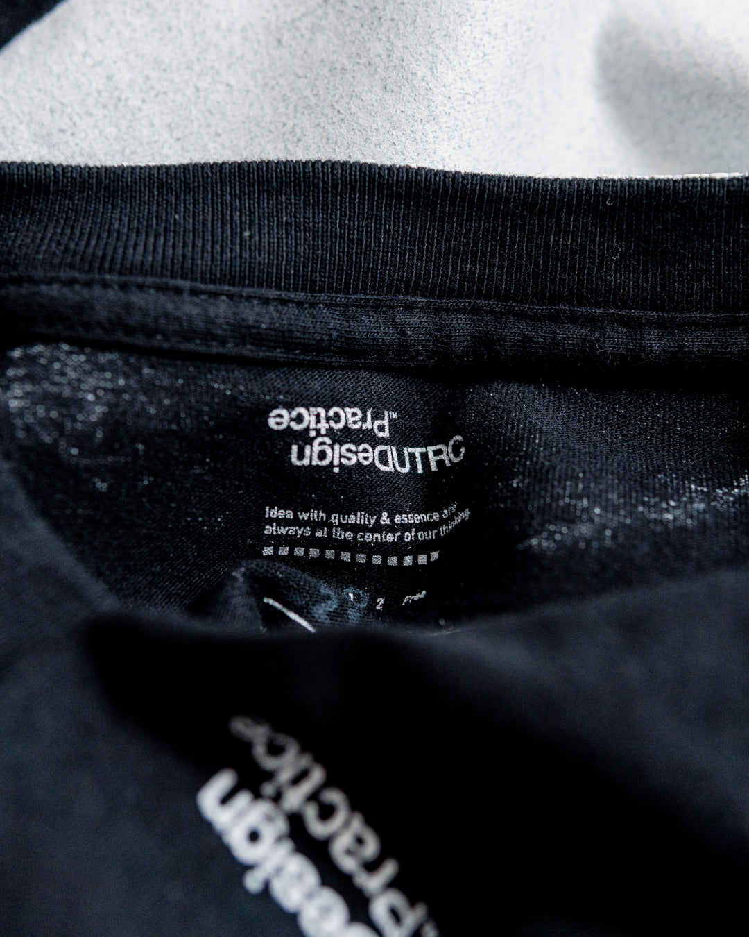 白でも透け感のない、程よい肉感としなやかさを 持つボディーに、オリジナルのグラフィックを 施したプリントTシャツ。 背面に大胆にベタ塗りのプリントを施し、 腰位置には透明なゲルプリントで UNTRACEのロゴを配しています。