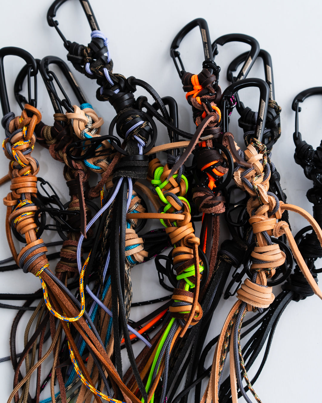 ナイロンのパラコードとカウレザーを様々な配色と編み方で1本のストラップに仕上げた、”ROPE" 。