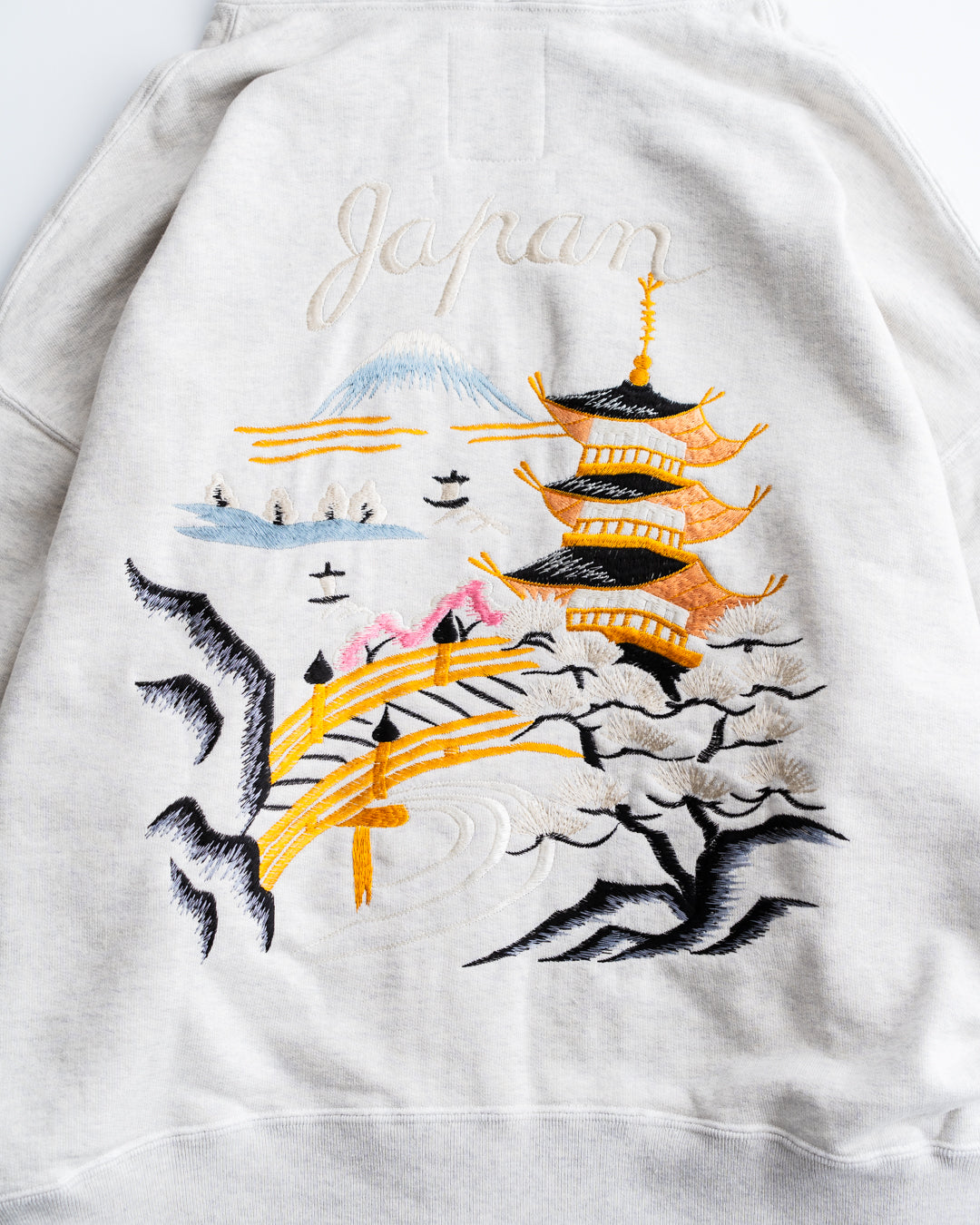 日本を訪れたUSARMYの兵士が、日本でスカジャンを売る刺繍スーベニア屋さんで、自分のもつジップパーカに刺繍を頼んだ物語で製作。