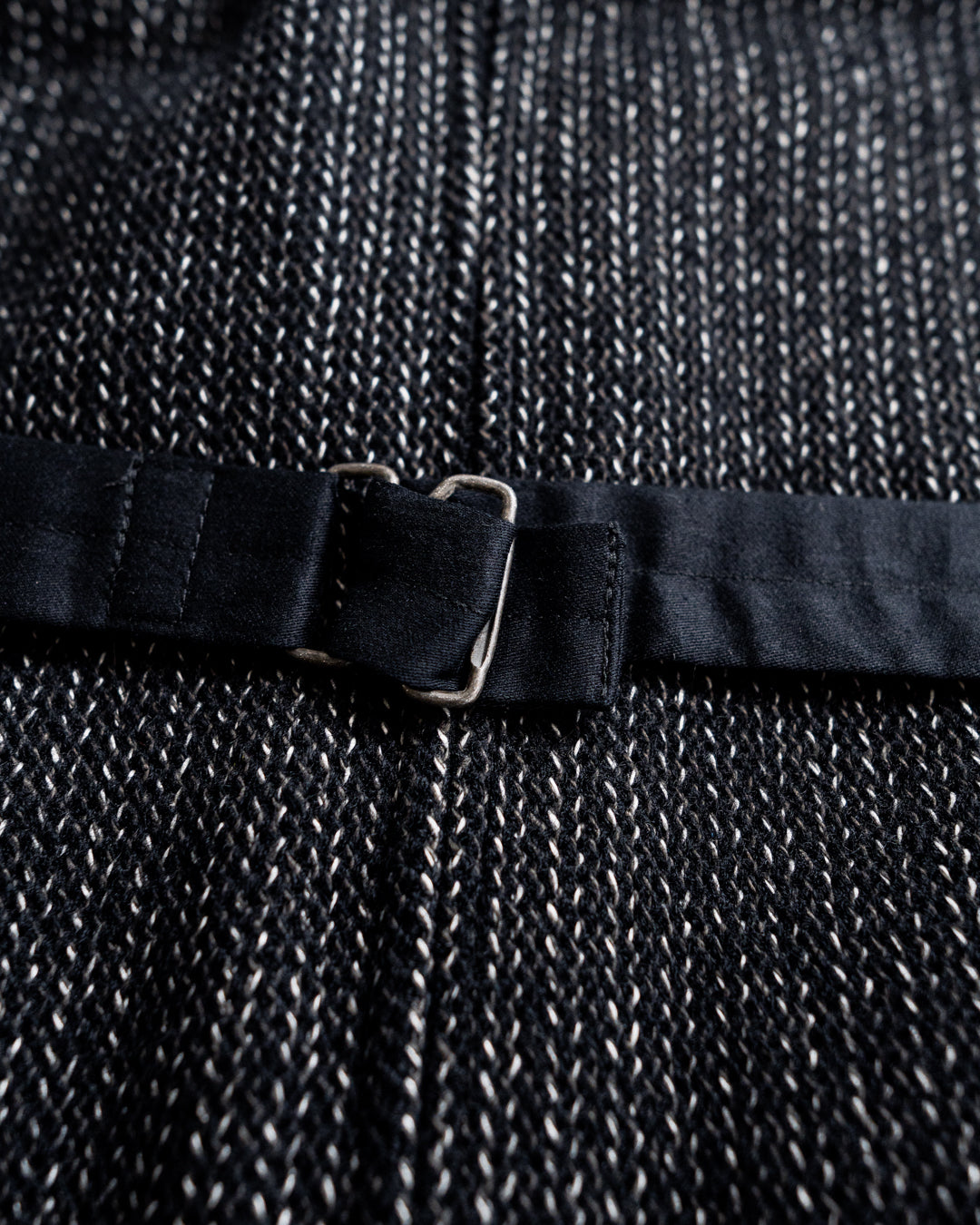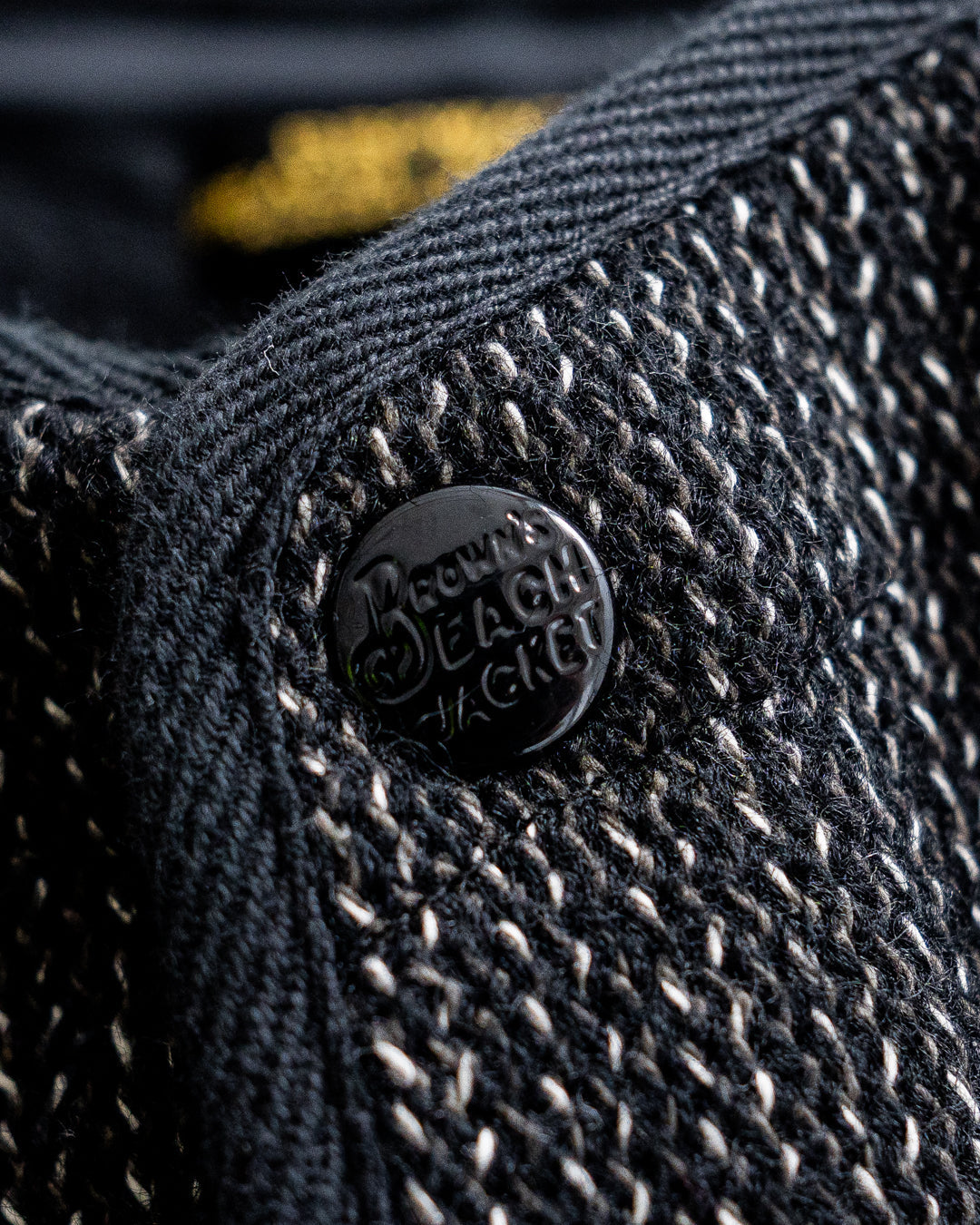 独自のマテリアルである『ビーチクロス』は、COTTON 27%、WOOL 73%の混合生地でできており、その生地が織り成す不規則なムラ、凹凸のついた表情から、通称『ごま塩』と呼ばれる生地を忠実に再現。