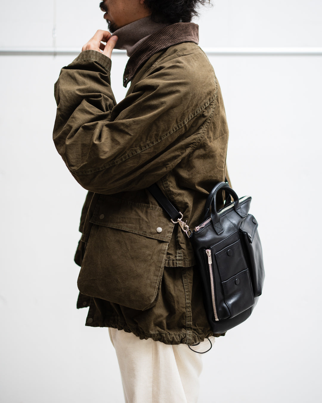 アニリン仕上げのカウレザーを使用して、カバンの形がきちんと出るように適切な厚さの革を選びました。重量は軽く仕上げましたが、その中でもカバンがしっかりとしたフォルムを保ちます。革本来の自然な風合いが特徴で、使用するたびに柔らかく経年変化していくのが魅力です