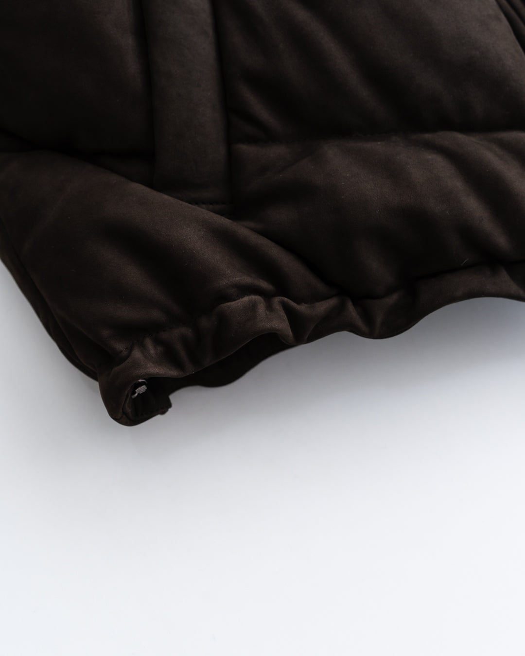70年代のクラシックなダウンベストを参考にデザインした一着です。中綿はレイヤードを意識して過度に詰めず、軽やかな着心地を実現しました。また、ライナーポケットは現代のミリタリーウェアを参考にしたデザインで、機能性とデザイン性を兼ね備えています。シンプルながらも、時代を感じさせるディテールが魅力的なベストです。