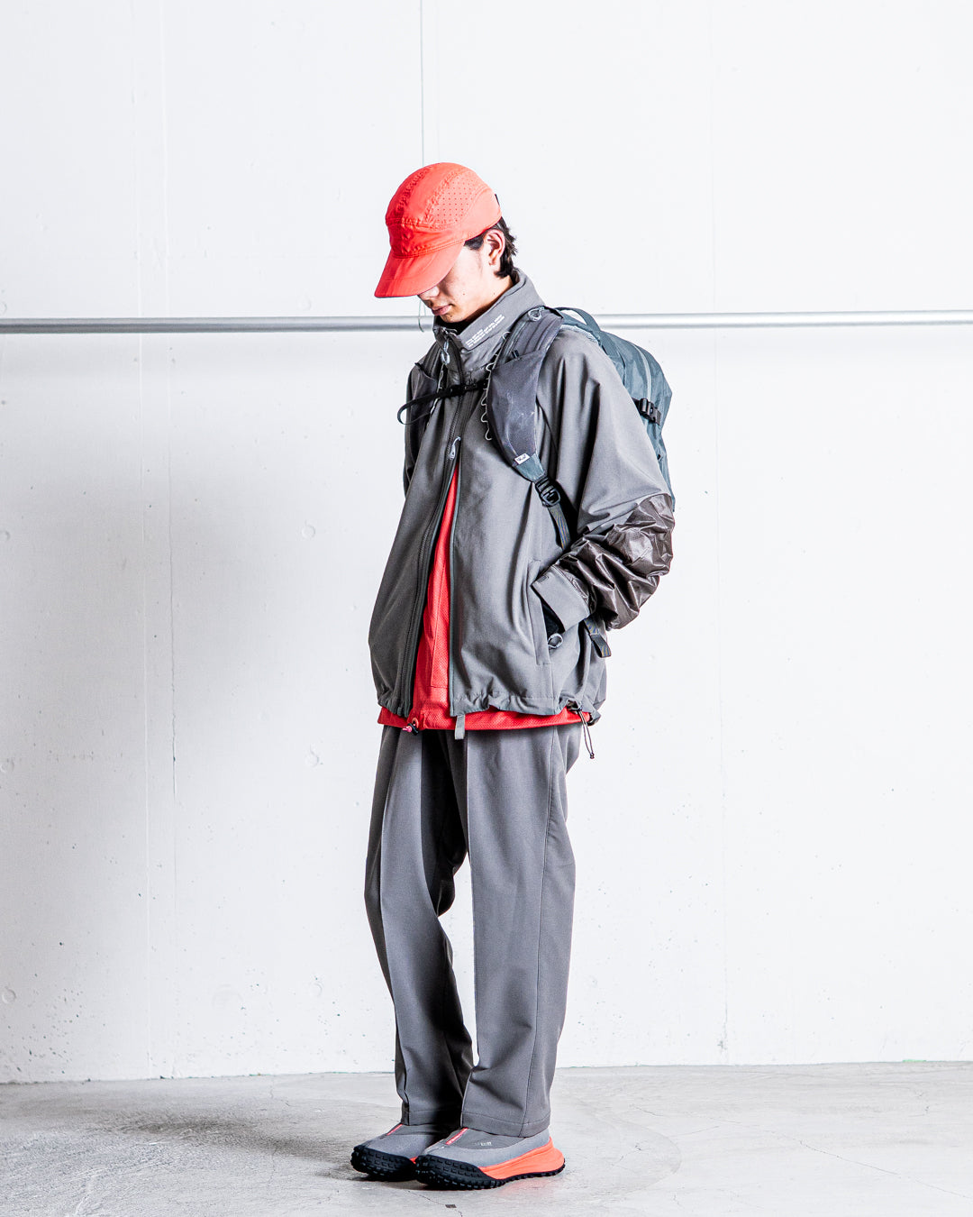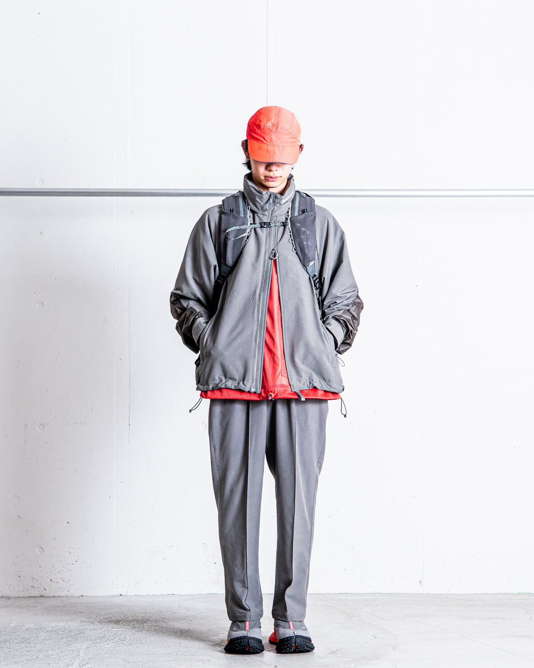 [ MENS / セットアップでの着用]モデル 身長169cm 体重53kg / 着用サイズ L / 着用カラー WOLF GRAY