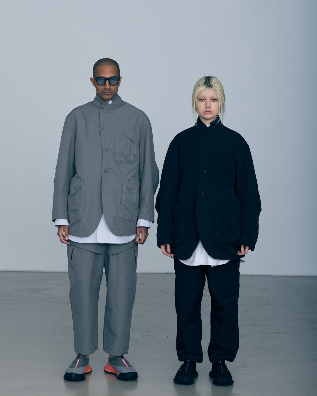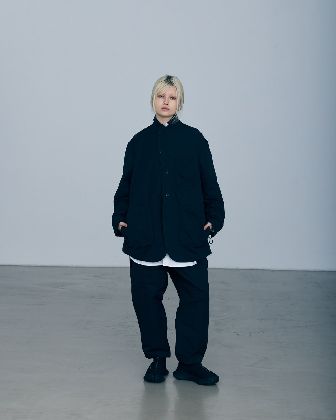 A tailored jacket designed with an extreme A-line silhouette. Meticulous patterning and sewing techniques are employed to ensure it can be worn casually without losing its structure.