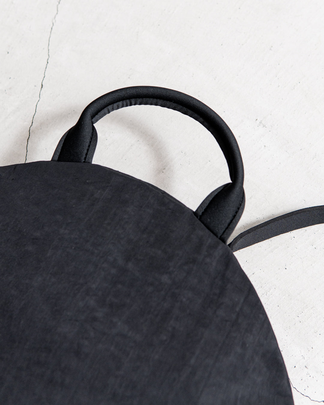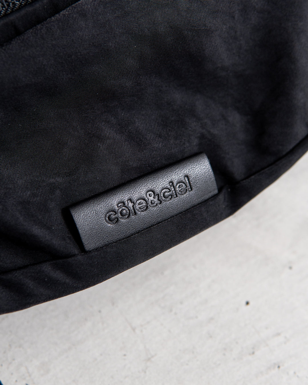 撥水性があり、ソフトな手触りでセミマットな仕上がりのスムースブラックナイロン生地を使用しています。