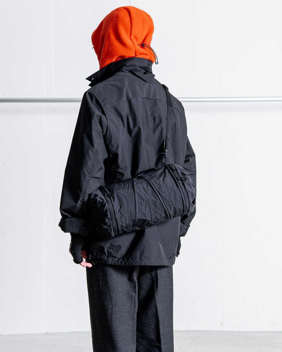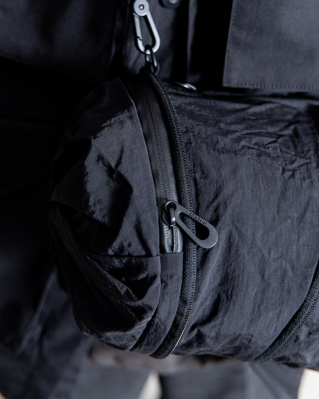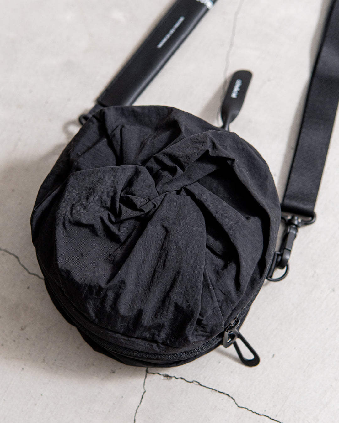 小さいオプションである圧縮 2 ポケット バッグは、ポケットが収納されている両端の生地に独特のひねりが施されているのが特徴です。そして中央のジッパーでバッグを小さなダッフルの形に拡張し、更にその中のジッパーを使用して中央のコンパートメントへアクセスします。