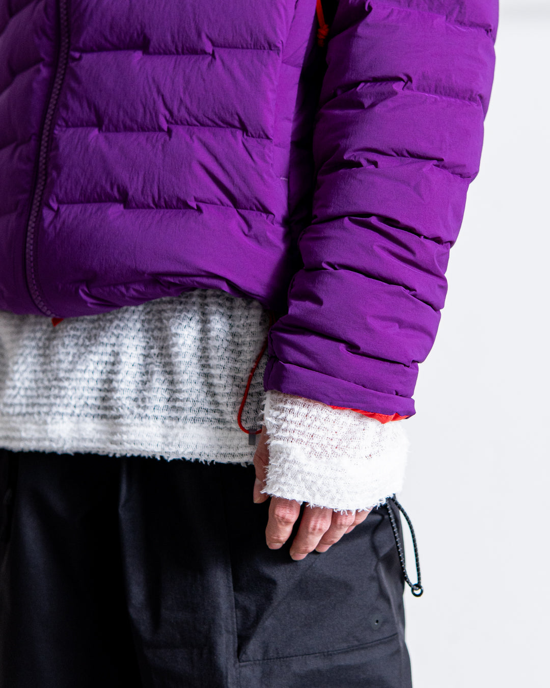 過酷な山岳状況でも暖かさを提供するため、丈夫で撥水性の高い2Wayストレッチの生地に、最長10,000分間(約1週間)乾いた状態を保つ800Fillの疎水性グースダウンH DOWN Platinumを163g (size L)封入。