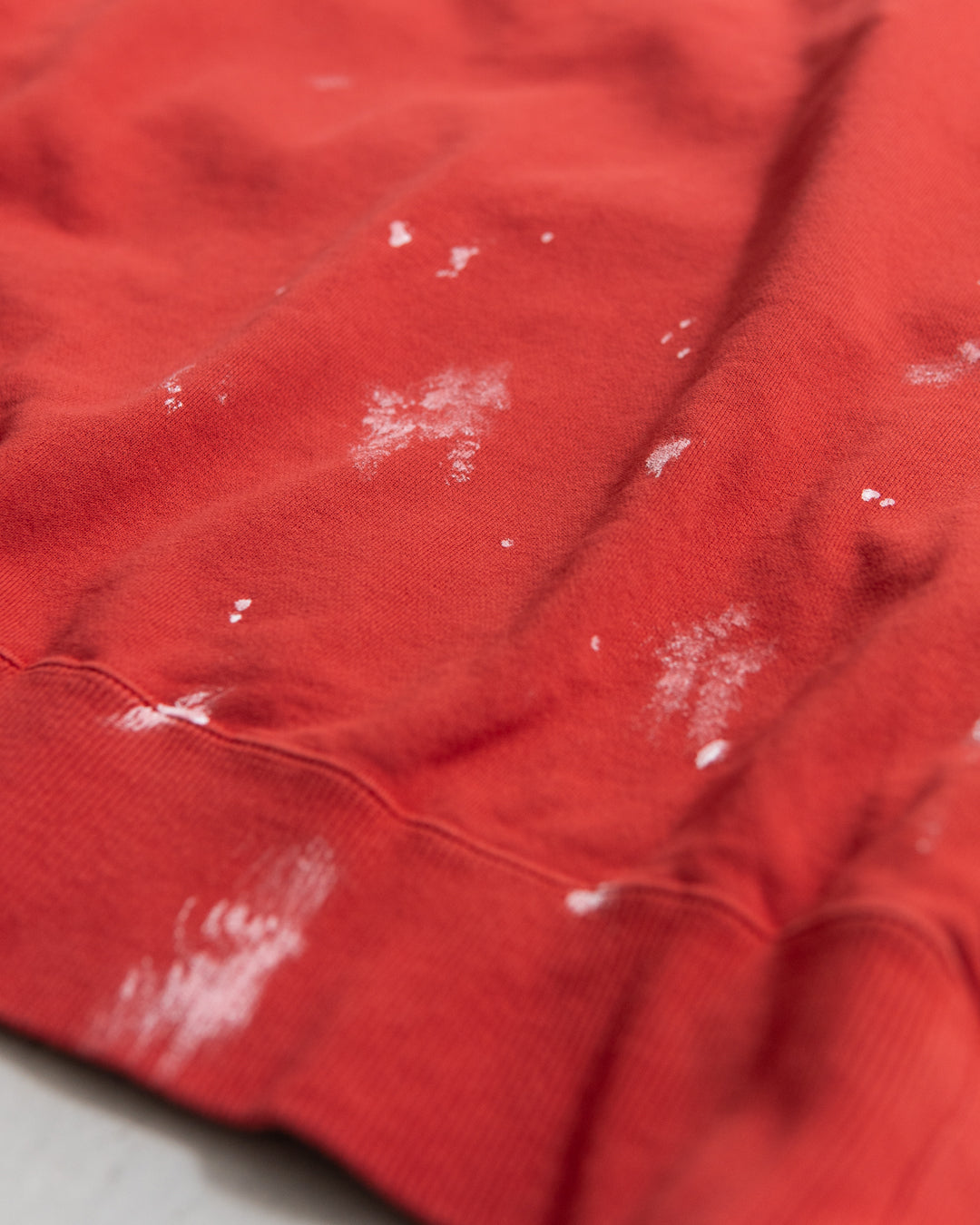 ヴィンテージフェードでは当時の古着が実際に経 年変化した縮みや退色感を、染色方法を含めて再 現。リアルヴィンテージのようなムードのある一 着に仕上げました。製品を自然な退色を期待でき るプロセスで染色したのち、経年や日焼けによっ て起きる色合いの変化を複数の加工法を組み合わ せて表現しました。1点1点手作業による個体差や ムラ感も魅力の一つです。レッドのみ特殊ブリー チの代わりにミルクペイントを施しました。