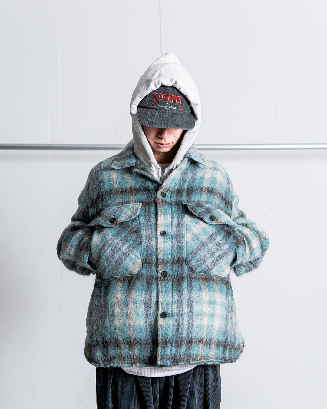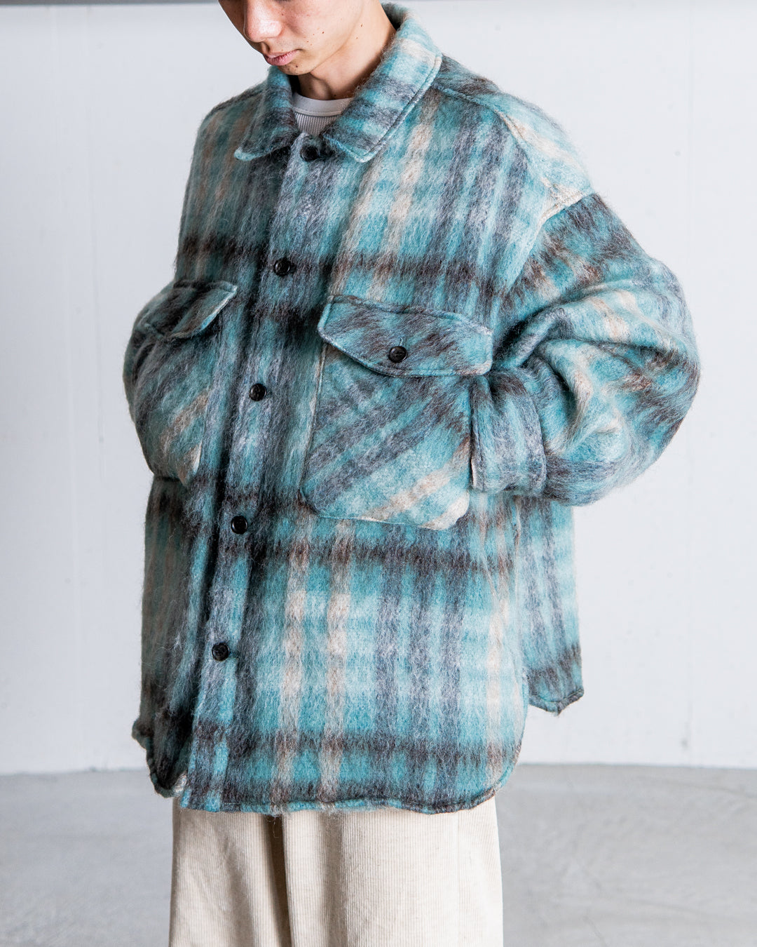 暖かさと軽さが特徴の上質な生地を使用した定番のCPOシャツジャケット。ウール特有のシャギー感とファーのような毛並みで軽くて暖かい。ゆとりのあるサイズ感ながら、ソフトで軽量な着心地が特徴です。