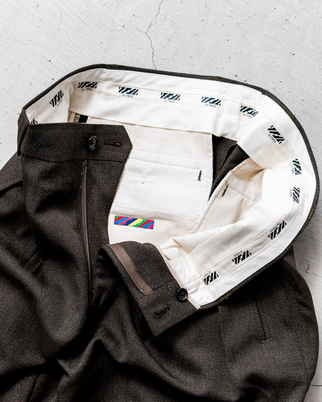 このツータック・パンツは、1980年代にテーラード・ジャケットに使われていた生地を解体し、現代用にアップデートしたもの。