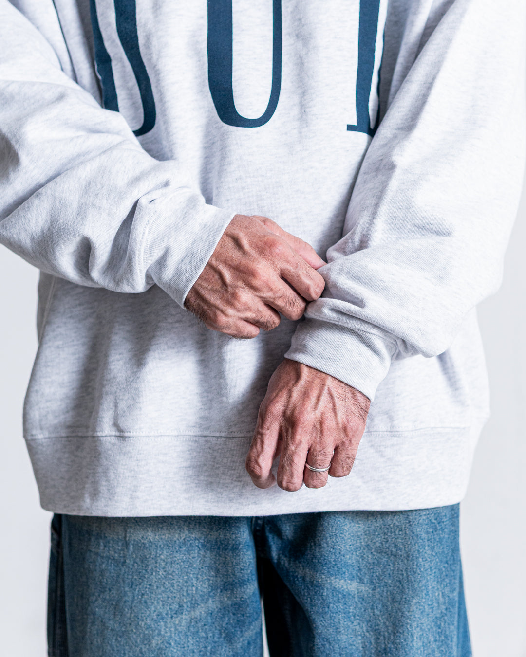 レゲエから派生した音楽ジャンルDUBを前面にプリントしたスウェットシャツ。ドロップショルダーのBOXシルエット。