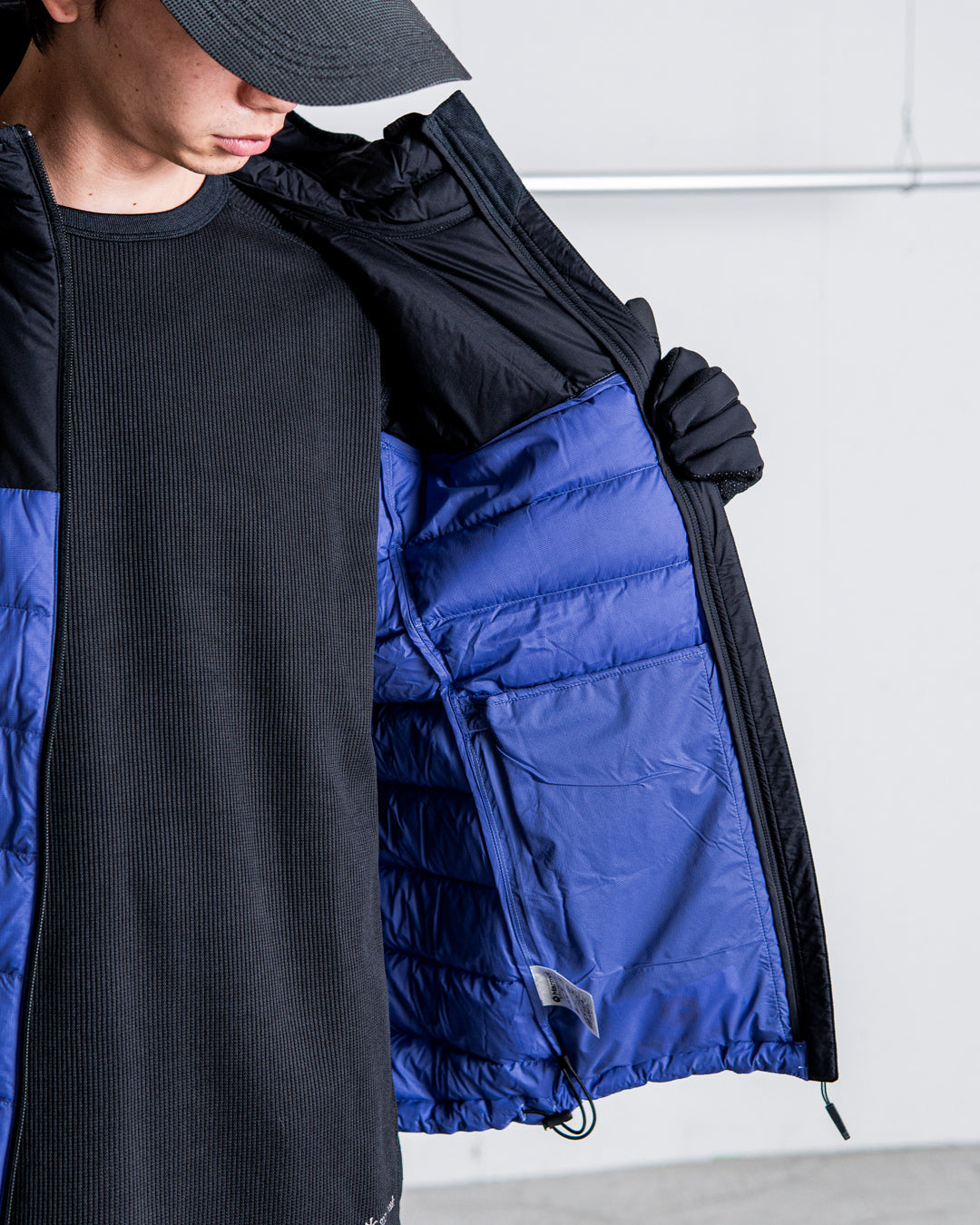 ダウンの水濡れを防ぐことで、ふわふわとしたロフト感と保温性をしっかりとキープします。フードは風の侵入を抑えるコンパクトフィット仕様。ダウンパックを使用しない2層構造により、すっきりとしたシルエットに仕上がっており、防寒アウターとしてはもちろん、インナーダウンとしても活躍します。