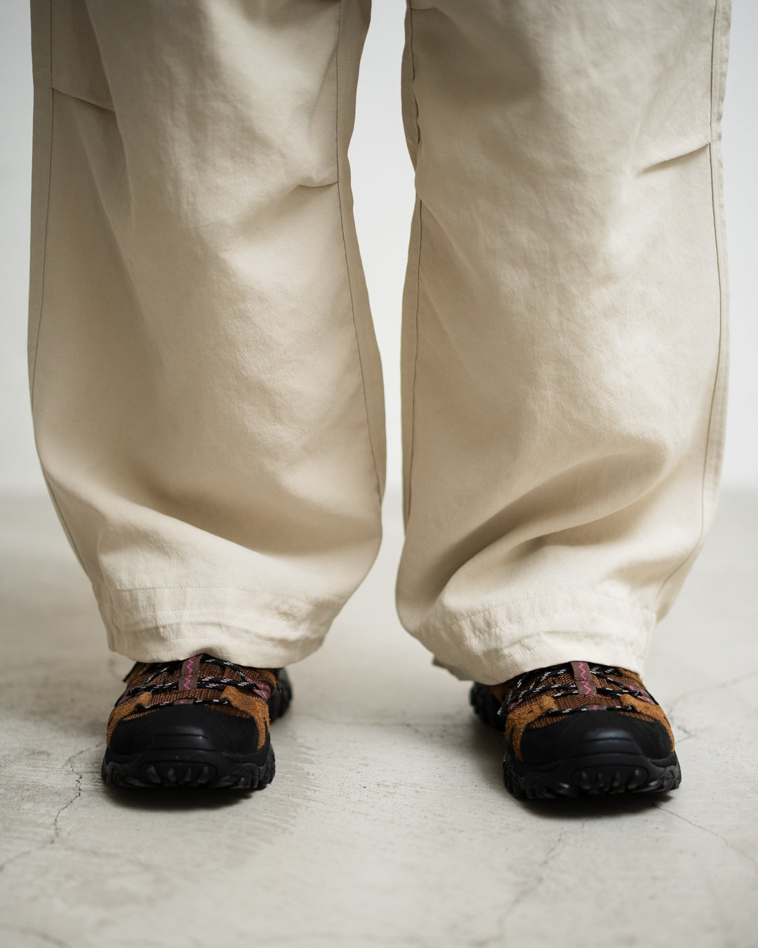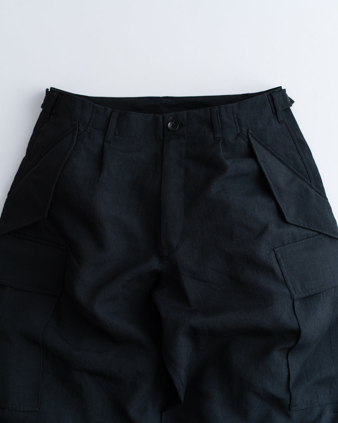 中空糸を使用したリネンライクファブリックを使用したカーゴパンツ。