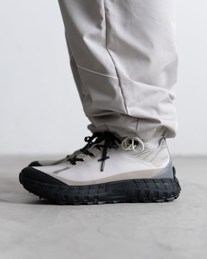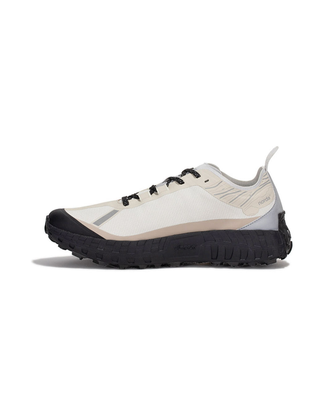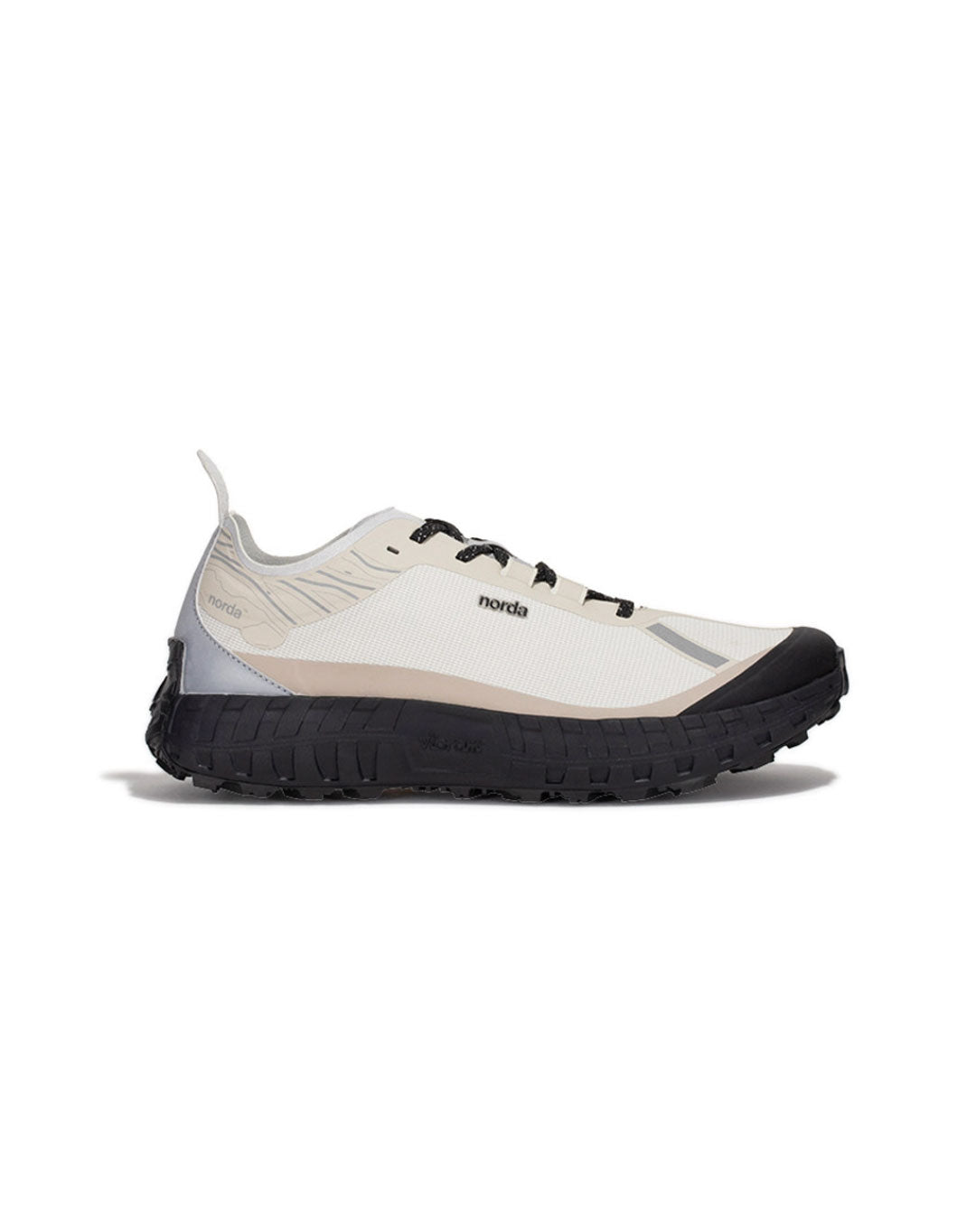 nordaTMとVibram®は最高のパフォーマンスを発揮するトレイルソールを開発するため、 デザインコラボレーションを行い、これまでの限界を超える依頼をVibramチームは実現しました。Vibram® x nordaTMソールは、地球上で最大のカンブリア紀以前の岩層であるカナダの岩盤にインスパイアされています。 ミッドソールにはVibram® SLEを採用し、 最軽量かつ最高の反発性能を実現し、 同時にクラス最上級のクッション性と耐久性を誇ります。 nordaTM 001は、最高級の部品からなるランナーによるランナーのためのシューズなのです。