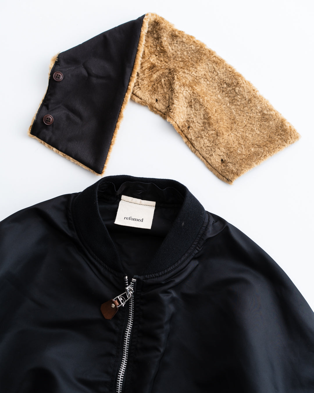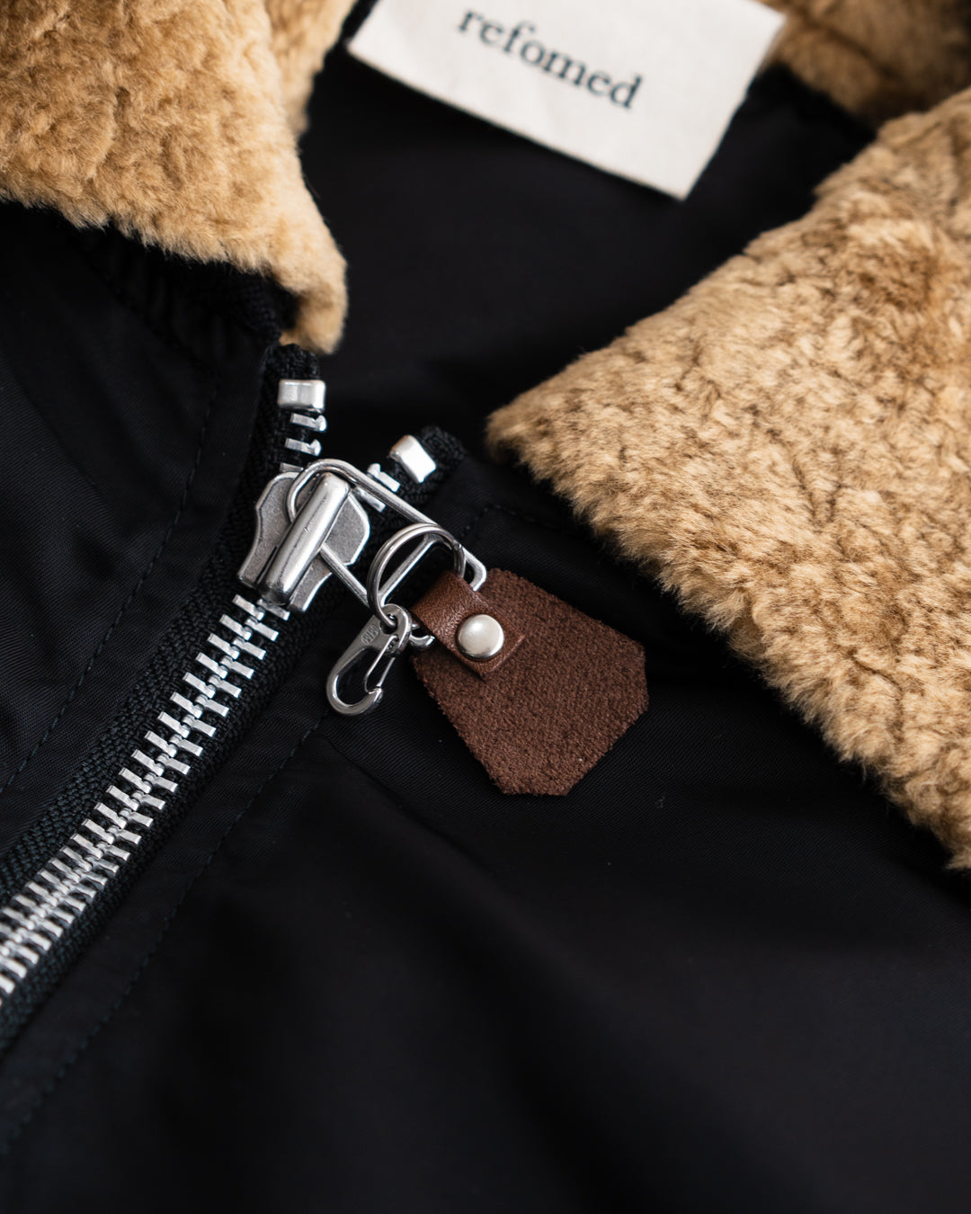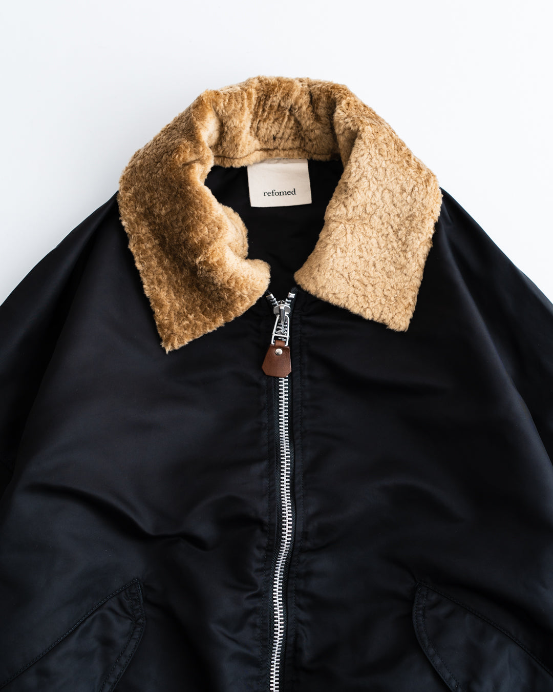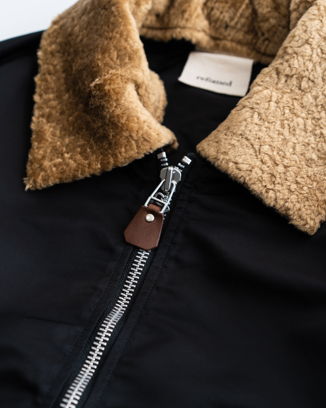 作業現場でよく見られるボアを使用した防寒着から着想を得た"ドカジャン” 商品名のカストロ(ビーバー)は働き者と言う意味もあり、真冬の職人をイメージしています。 生地はリサイクルナイロン糸を使用したツイル素材。 コーティングを施さず、ソフトに仕上げている事が特徴です。製品加工を施し、鈍い光沢が魅力です。