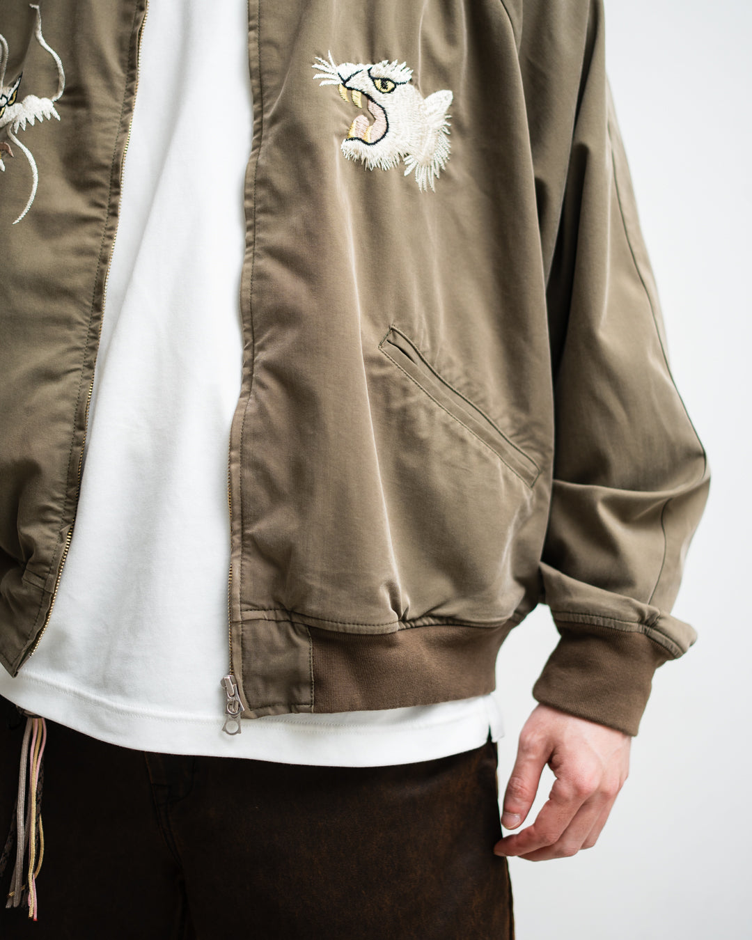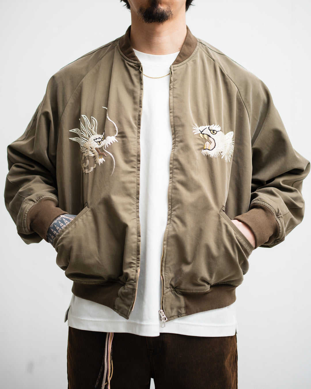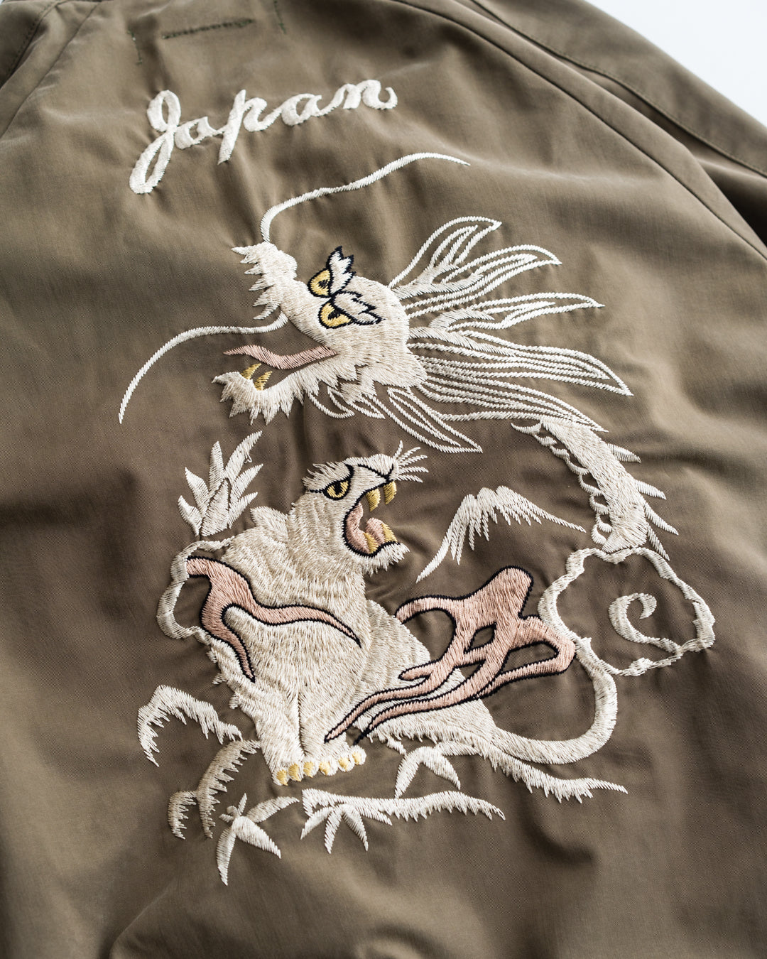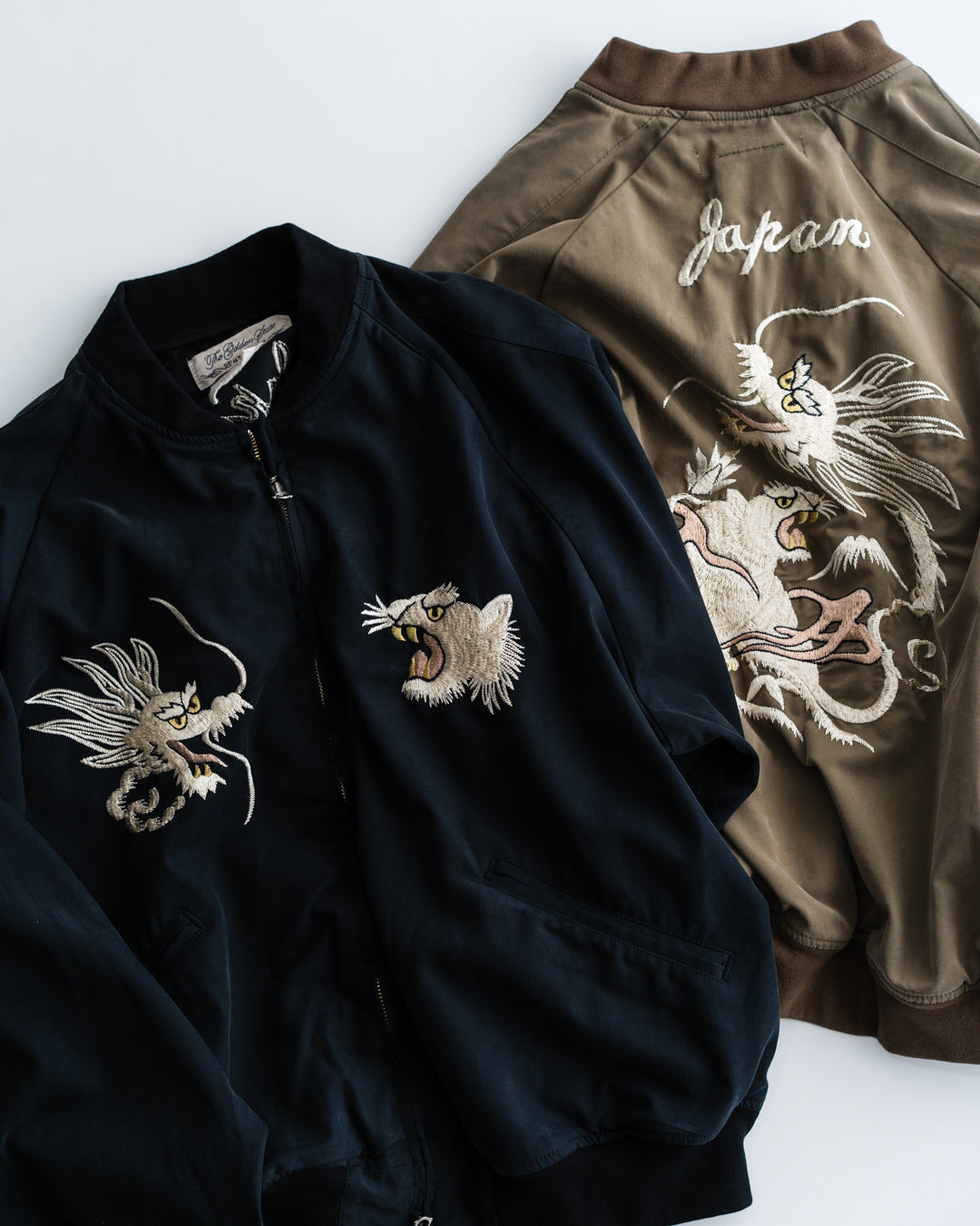 フロントには「龍」と「虎」、背面には「JAPAN」の文字と鳳凰の刺繍が施され、