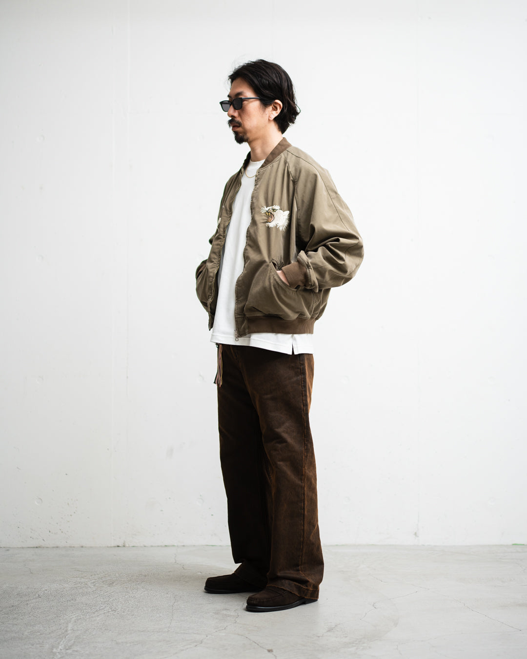 繊細な艶感と落ち感が魅力のレーヨンフィブリルツイル生地を使用したスカジャン。