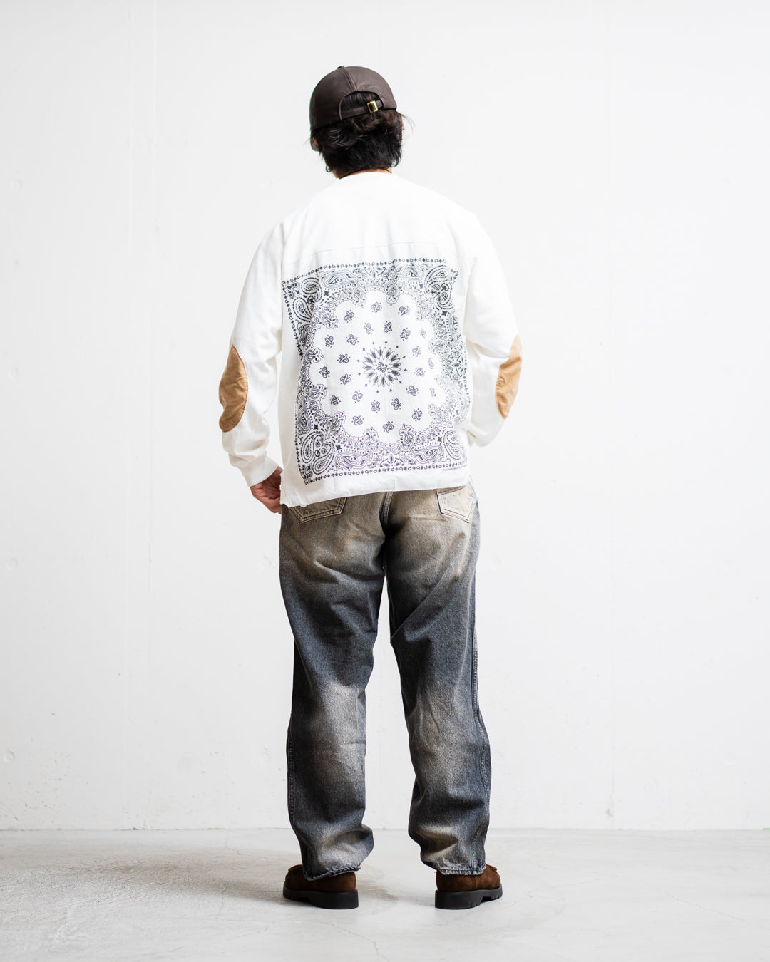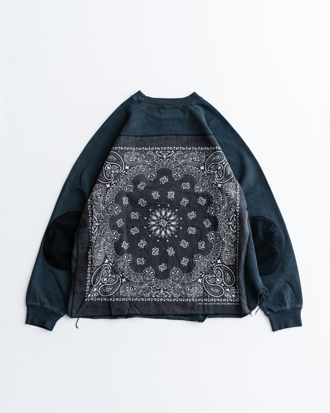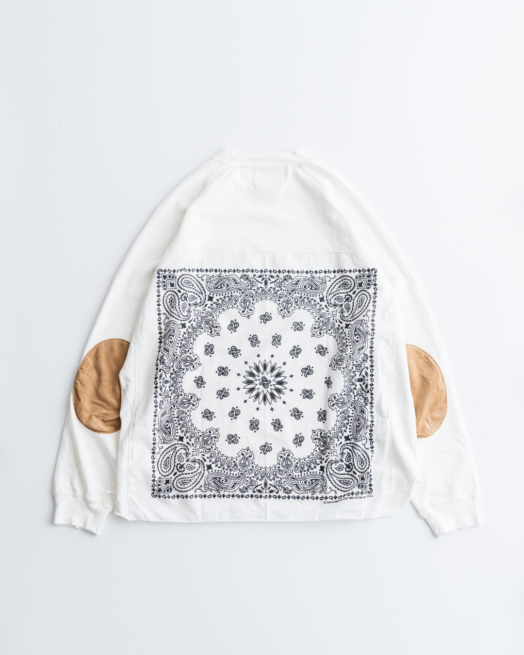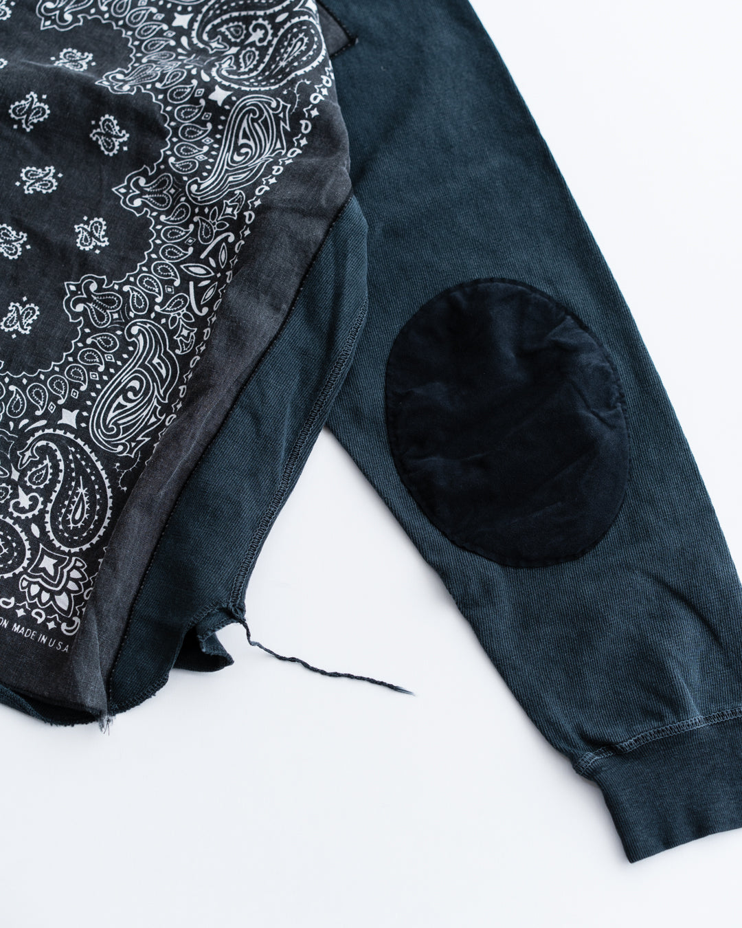 背面にはヴィンテージバンダナを貼り付けており肘には異素材のエルボーパッチも施しております。