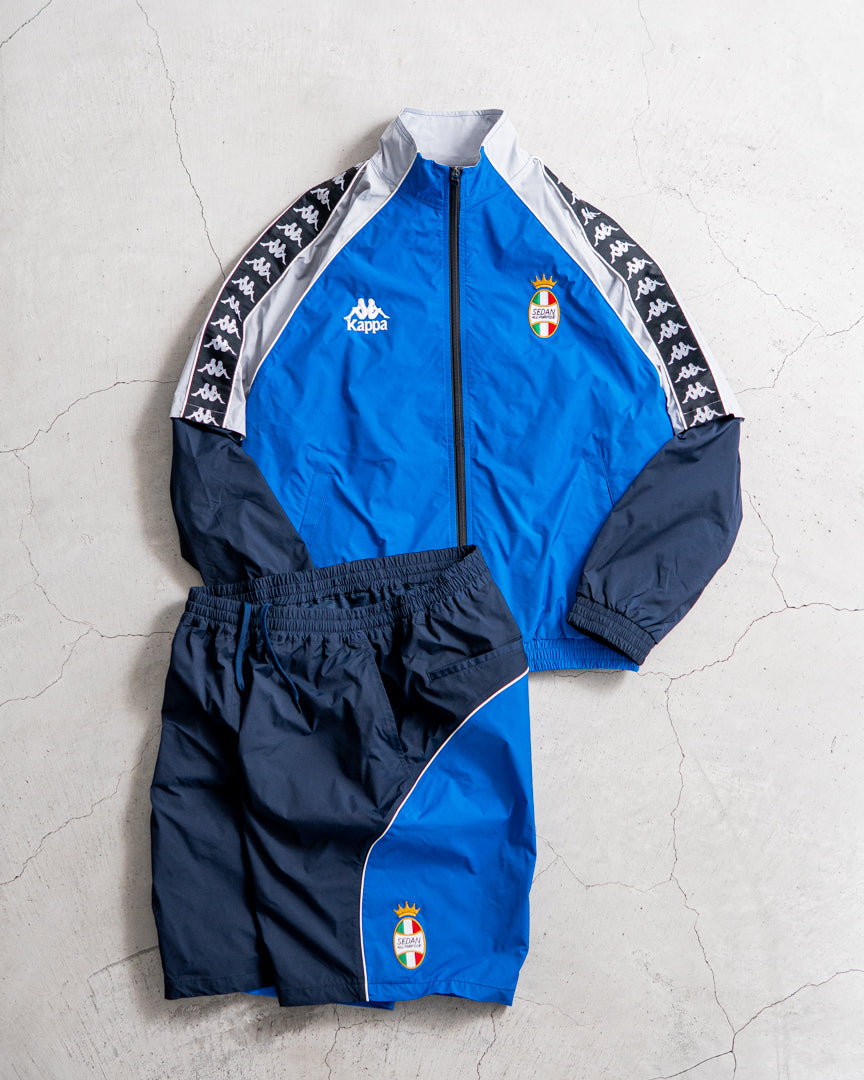 Kappaはイタリア・トリノ発のスポーツブランド。ユベントスやローマ、バルセロナなど数多くのサッカーチームをスポンサードしてきたことでも有名です。また近年では多くのファッションブランドとのコラボレーションも記憶に新しい方も多いのでは。そんなKappaとのコラボレーションアイテムを作らせていただくことになりました。今回はジャケット、ショーツ、ゲームシャツの3種類のラインナップです。プレゼンテーションショーツはKappaのお膝元でもあるイタリアサッカーをイメージしたカラーリングの2色を作りました。丈も長めで今の気分で履くことができます。オリジナルのエンブレムはイタリア国旗を彷彿とさせる物に仕上げました。