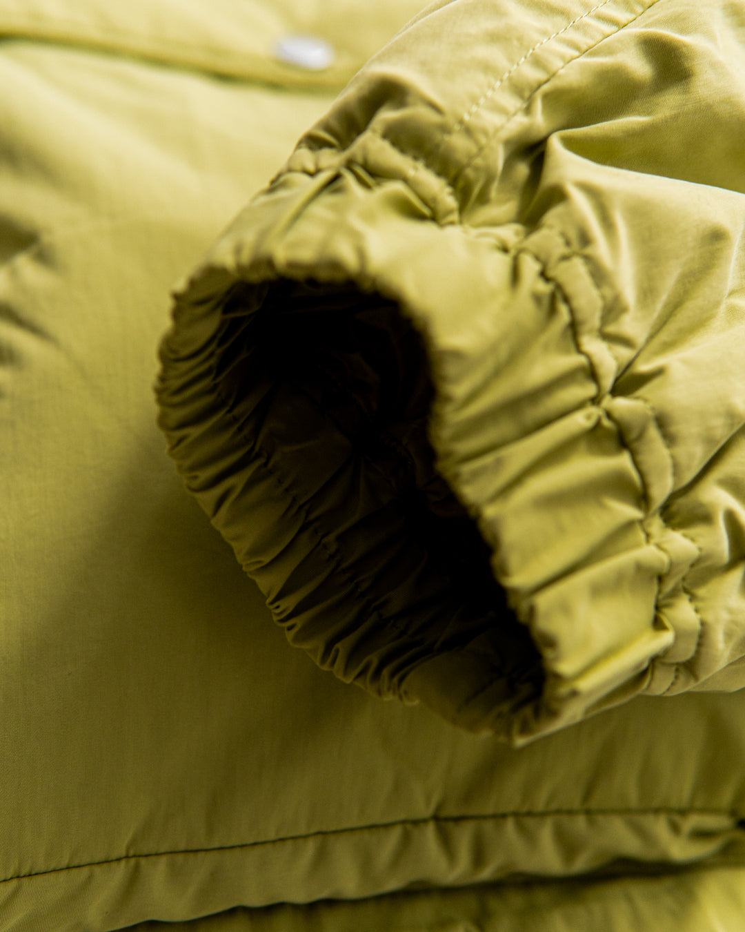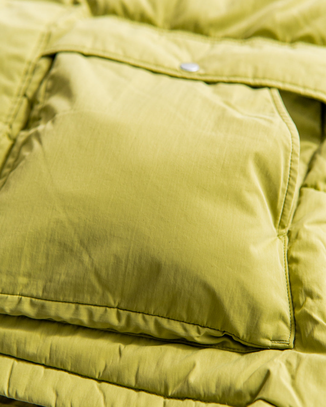 幅広いシーンで活躍してくれる程良いスペックと、都会的なデザイン性を併せ持ったフード付きのダウンジャケット、Everyday Down Jacket。リサイクルのナイロン生地を使用した、軽量タフタ素材を表地に採用しています。さらに、製品染め加工を施すことによって、リアルなヴィンテージテイストを演出した、手の込んだシリーズのアウターウェアです。ナイロンならではの軽量性、形態安定性を備えているのがポイント。製品染め加工によるシワ感やアタリが特徴的で、上級者風の着こなしを実現できます。