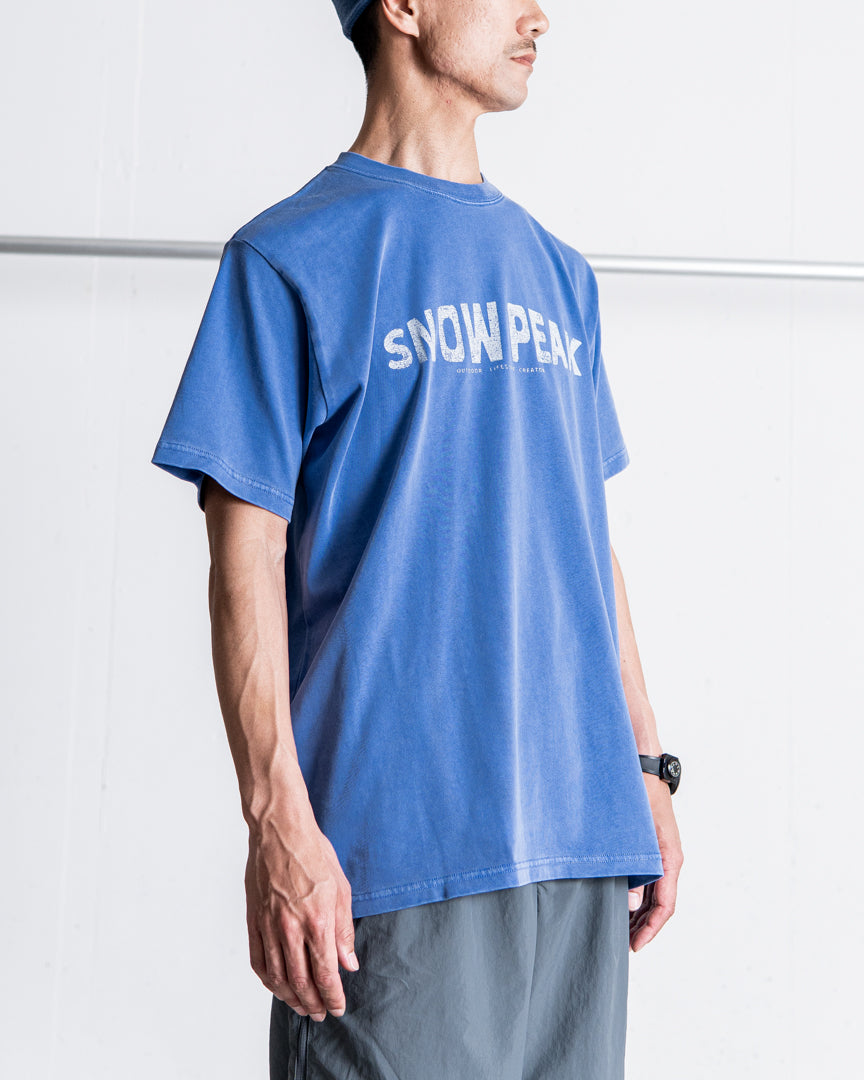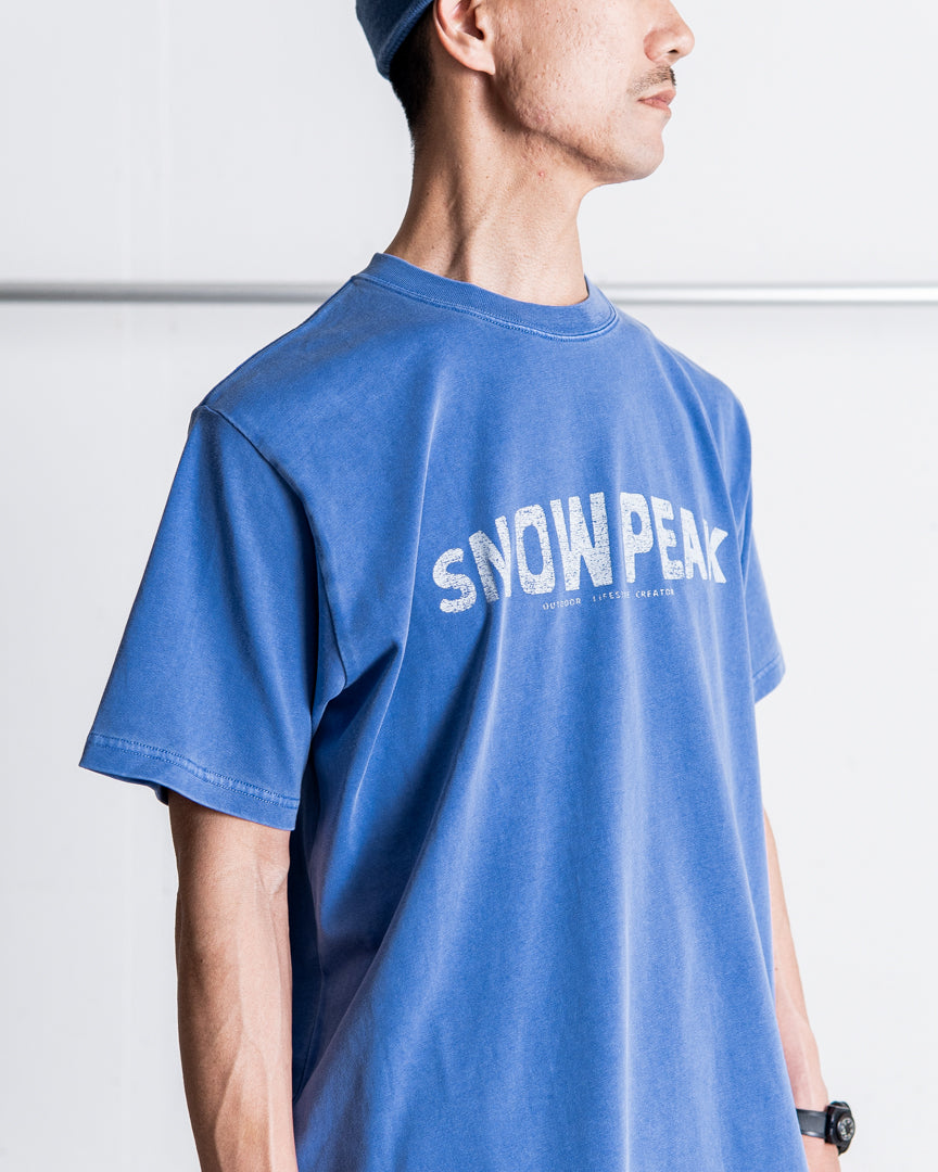 こちらのTシャツは、Snow Peakの文字をオーバルデザインに落とし込んだ、シンプルながらもオーセンティックなデザインです。こだわったボディの質感に伴ってプリントも掠れさせ、よりヴィンテージアイテムに近い雰囲気へと仕上げました。