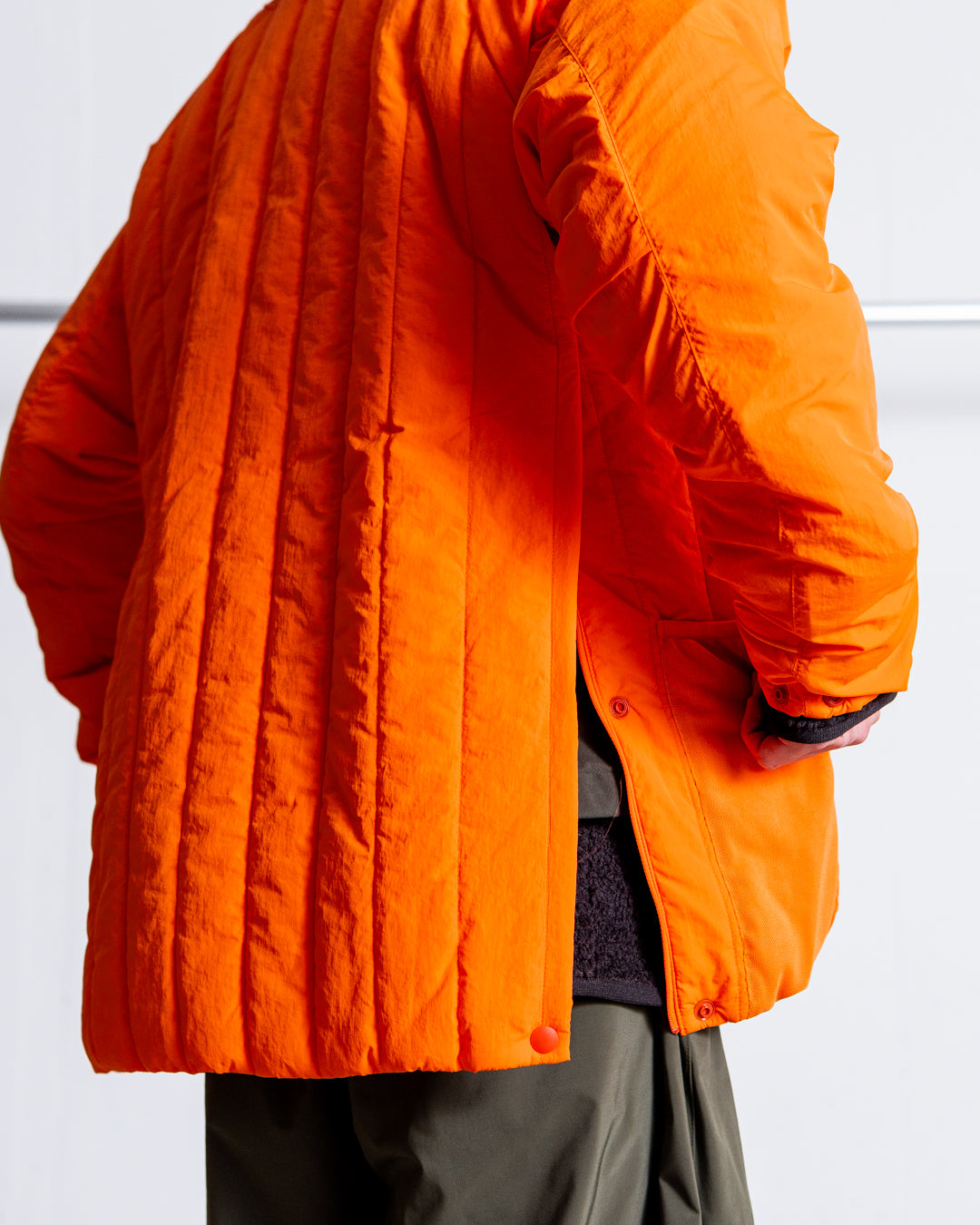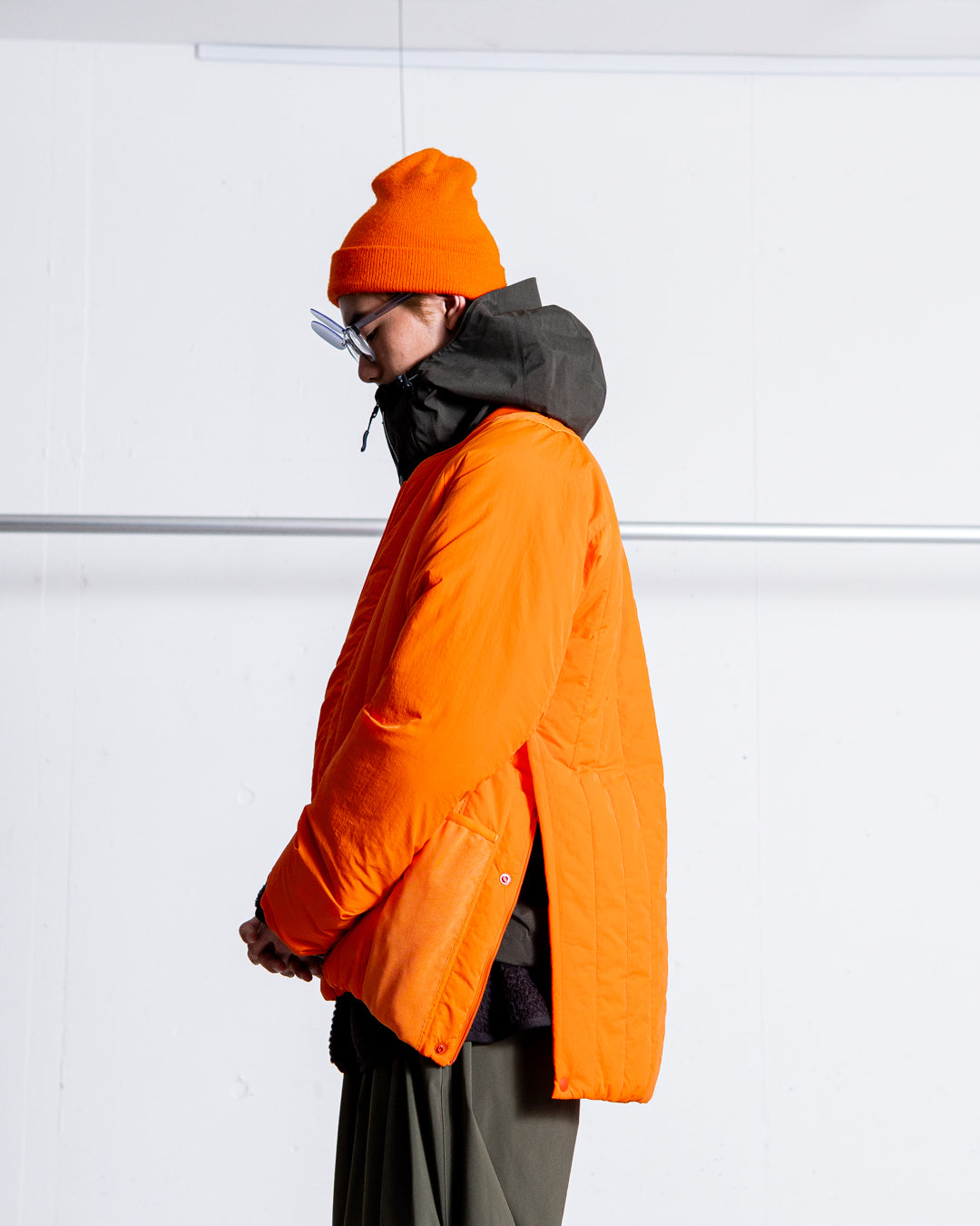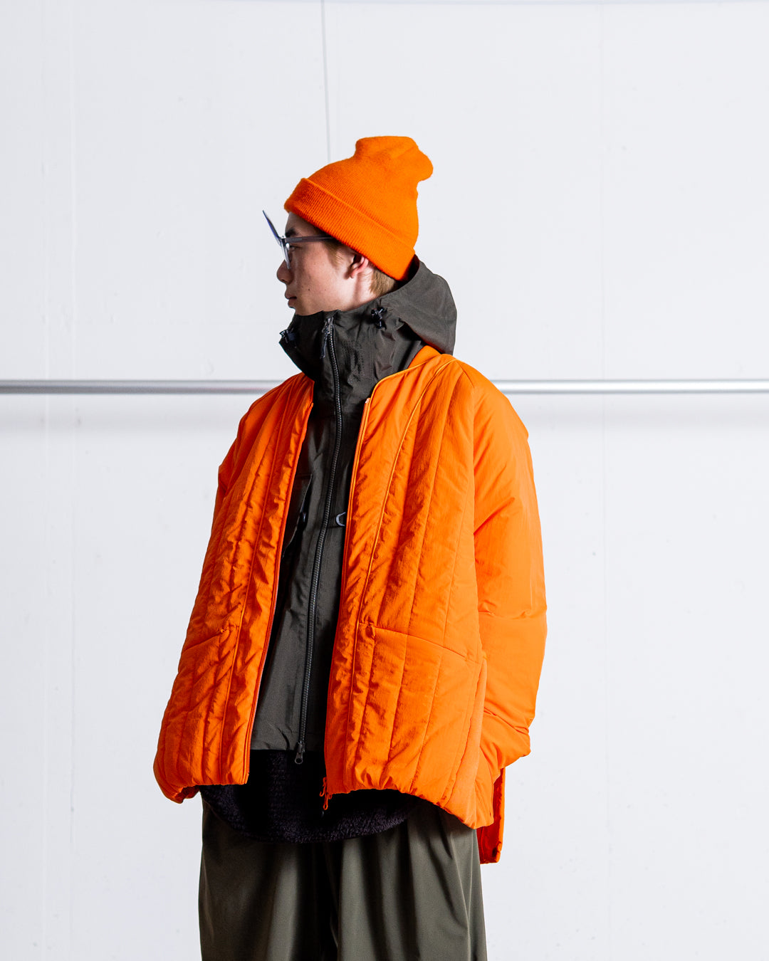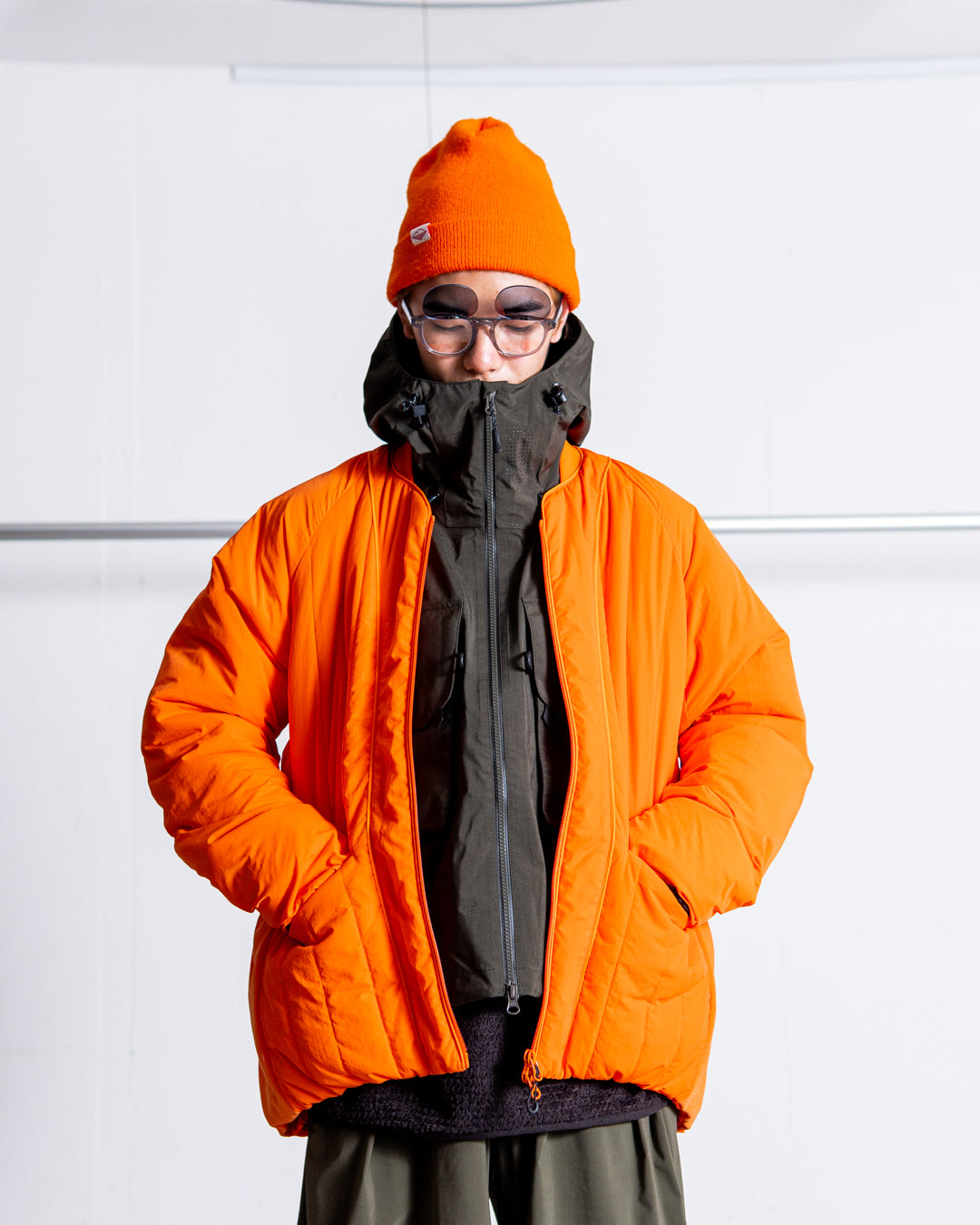 フロントジップ周り、下袖カフ部りにはリフレクターパイピングなど防寒着のためのギミックのみになりがちなインサレーションアイテムをWFELDらしい機能美で表現したアイテムです。